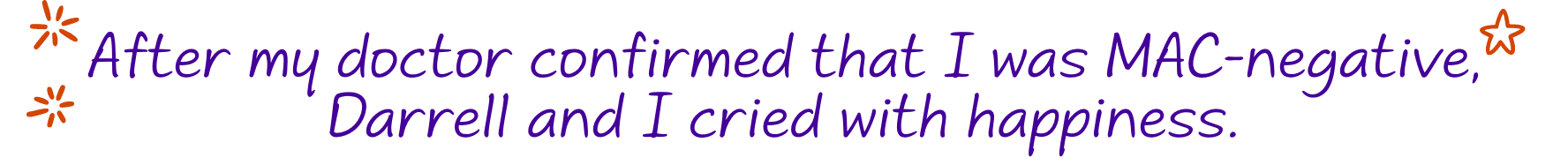 When I got my first MAC-negative test, I couldn't believe it. I think my doctor was just as excited and happy about it as I was! After all, we did it together.